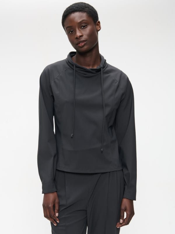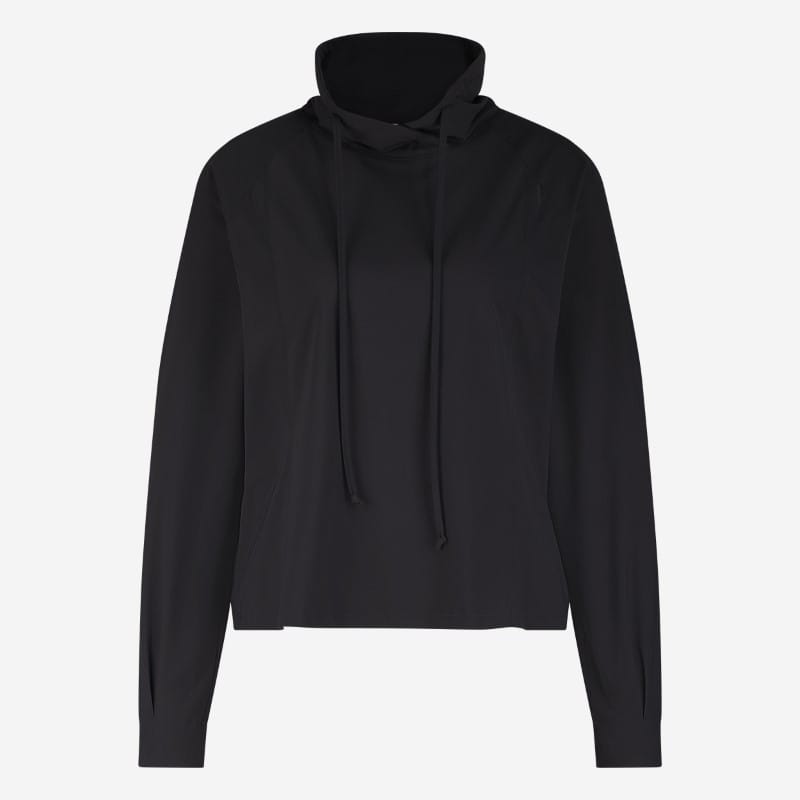 - Hoge kraag met capuchon en trekkoorden